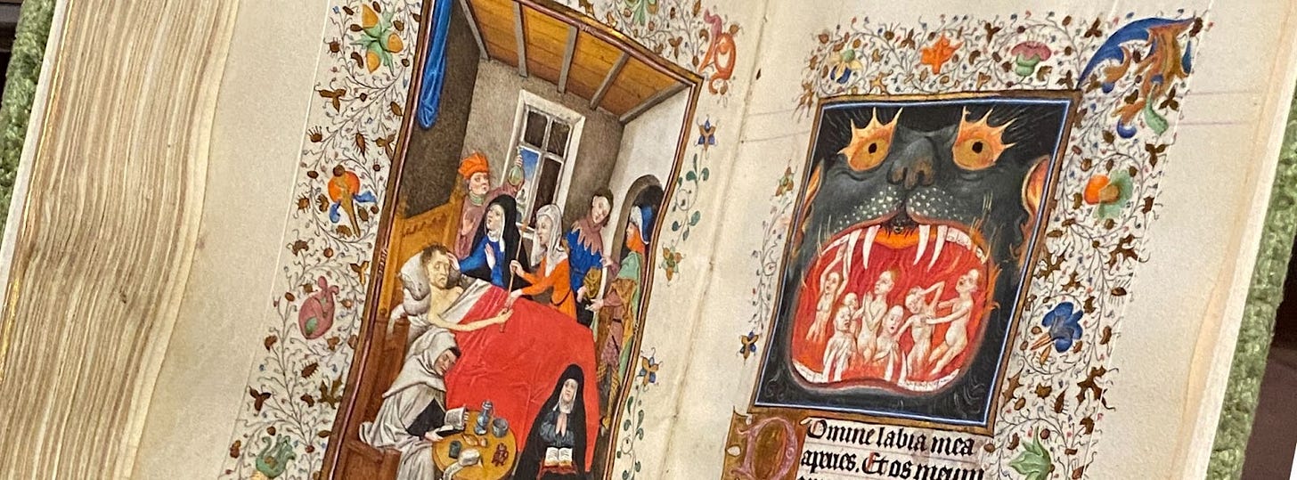 This exhibition is an excellent opportunity to see outstanding illuminated manuscripts. Aside from being beautiful, I find the work a rich source of visual narrative material (the image is from the fine book “The Hours of Catherine of Cleves”, 1440).